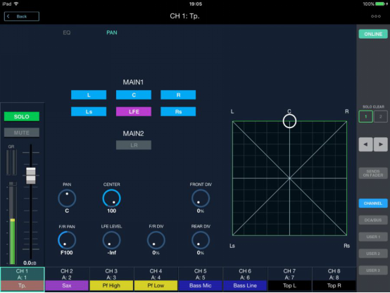 小組演奏幾首自己準(zhǔn)備的曲目,然后在演奏 The Manhattan Transfer 的熱門歌曲“Birdland”之前,互相演幾首彼此的歌曲。在演出期間,Svobodny(同時也兼任巡回演出的制作經(jīng)理)不僅要為觀眾混音,還在同一臺 Roland M-5000 上處理 Take 6 的監(jiān)聽混音。他還有另外一個關(guān)鍵任務(wù):在 iPad 上使用鋼琴應(yīng)用程序向歌手提供音高提示,將關(guān)鍵音符發(fā)送到他們的耳返。“這給我?guī)砹艘恍╊~外的壓力,我必須小心地選擇給他們發(fā)送這些音符提示的時刻,只能挑他們歌曲之間的間歇,”他說。“在這方面,M-5000 確實對我很有幫助。場景這個功能大大減少了我必須按下的按鈕數(shù)量。此外,我們有一個多達(dá) 40 個輸入通道的節(jié)目,其中十個是人聲通道,所以我需要保留所有這些和其他一些關(guān)鍵的東西,比如推子上可用的某些效果返回。我可以非常輕松的配置用戶層,會使得未來的操作游刃有余。在其他臺子上,我需要在層之間來回切換以顯示我想得到的通道。而在M-5000上,推子比較多,面板比較大,直接就能完整顯示一個用戶層,不需要來回切換。”