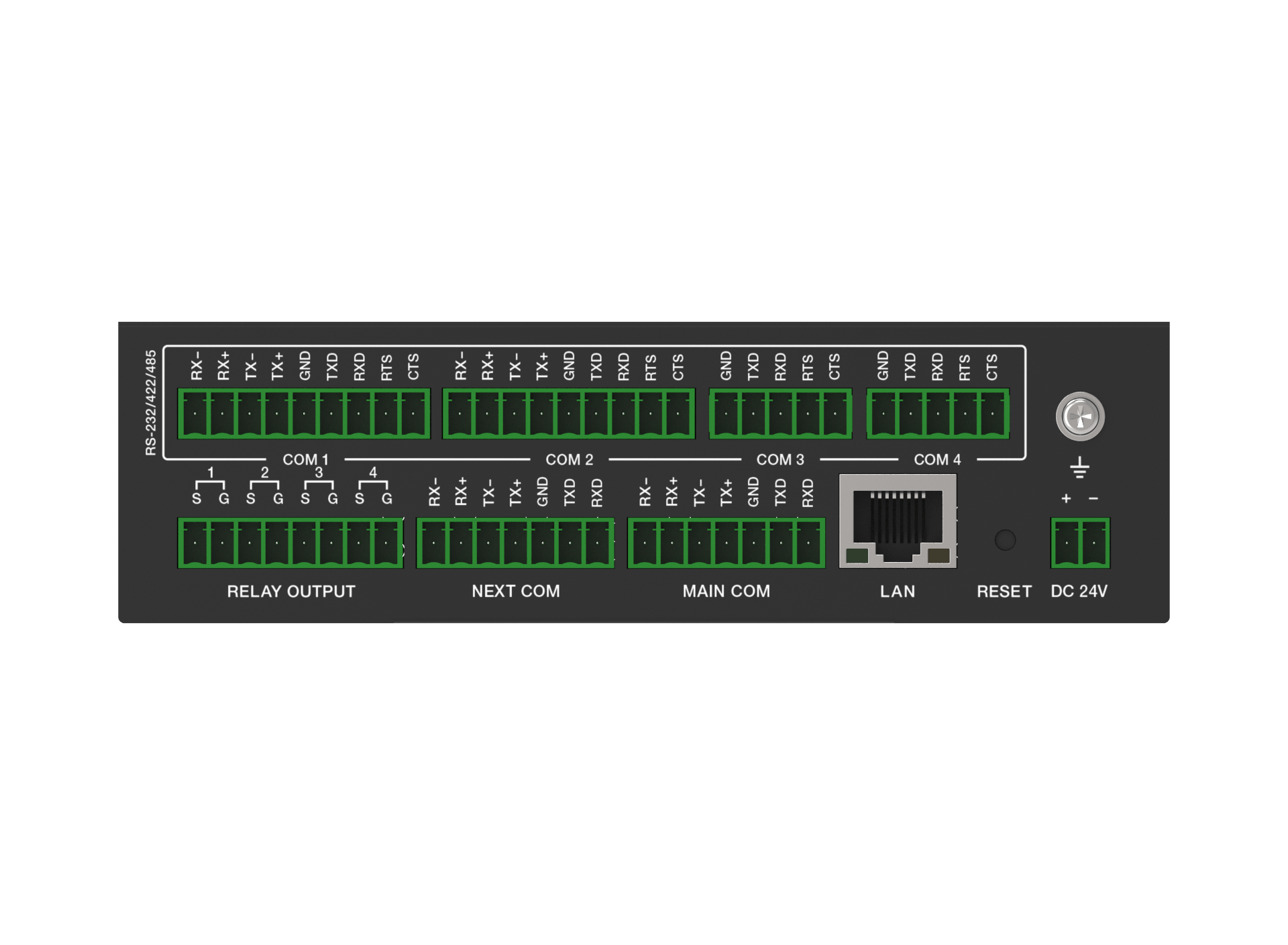 - 具有100M以太網(wǎng)通信接口,RS-232接口、RS-485和RS-422接口,可連接電腦或中控系統(tǒng),可對接AMX/CRESTRON/RTI等所有第三方中控系統(tǒng)